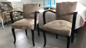 Apparu dans la première moitié du 20e siècle, le fauteuil « bridge », emblématique du style Art Déco, a été conçu dans les années 30 pour accompagner le jeu de bridge, alliant confort et élégance.